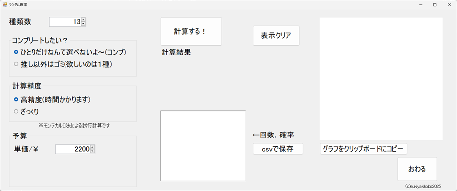 ・ランダム商品の入手確率計算 Windows11用(他のバージョンでも動くと思います)